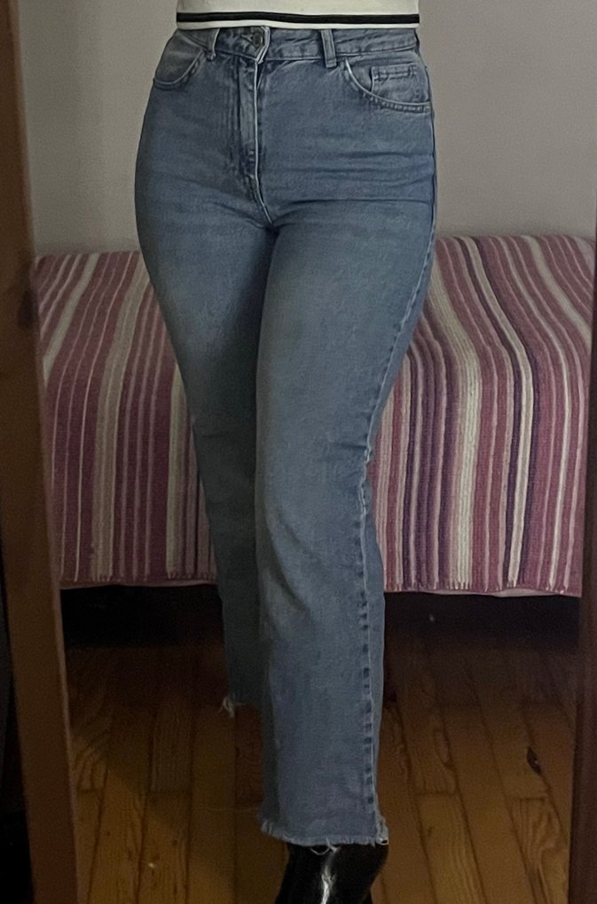 Düz kesim, fiziği güzel gösteriyor. Diz yapmıyor kotu kaliteli. Kilo aldığım için satıyorum