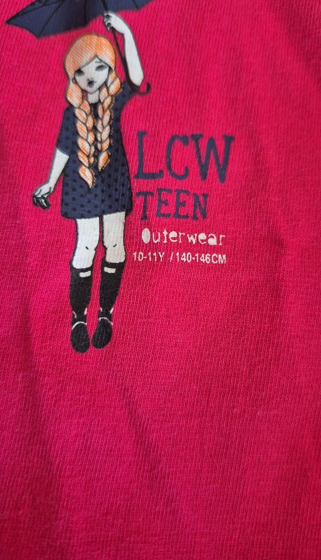 Pembe renkte, 10-11 yaş (140-146 cm) çocuklar için LCW Teen dış giyim koleksiyonunda yer alan renkli kalp baskılı üst.