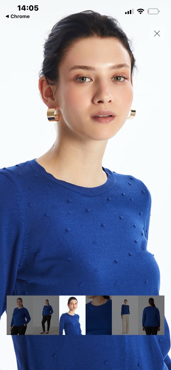 Mavi renkte, yuvarlak yakalı ve uzun kollu kadın triko kazak. Rahat kesim ve kısa boyuyla gündelik kullanıma uygun, minimal desensiz tasarım. ✨