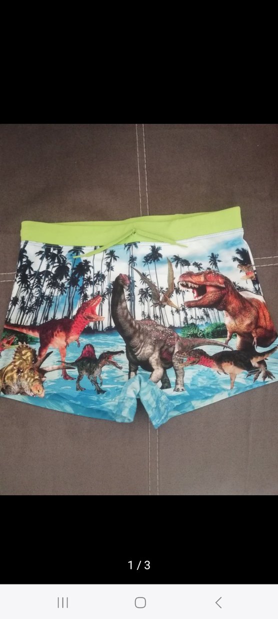 5 6 yas lcw ürünü Renkli dinozor desenli, açık yeşil bel bantlı erkek çocuk mayo, yaz günleri için uygun. hicbir kusuru yoktur. bel 28cm boy 22cmdir