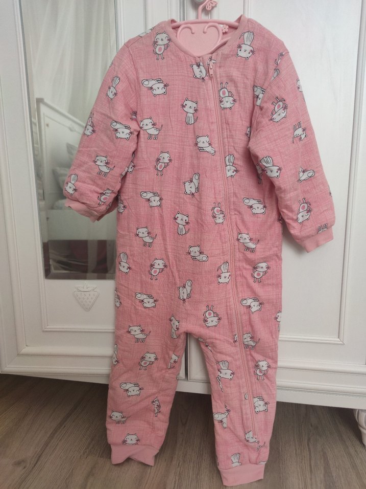 Bu pembe polar tulum, uzun kollu ve fermuarlı olup küçük hayvan figürleriyle süslenmiştir. Notlu yaka detayı rahatlık sağlar.
