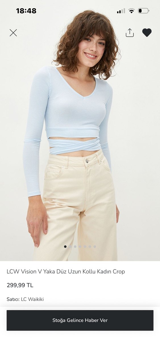 Pamuk kumaştan, V yakalı ve uzun kollu, pastel bej tonunda, fitted crop bluz. Günlük rahat ve şık kullanım için uygundur. Sıfır ürün