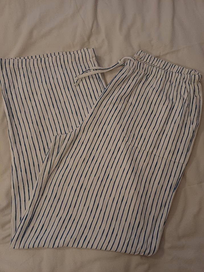 lcw vision beli lastikli çizgili keten karışımlı Kadın Pantolon