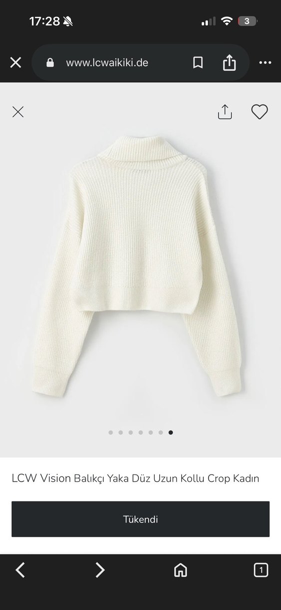 LCW Vision beyaz renkli, balıkçı yaka ve uzun kollu örme crop kazak, rahat ve basic tarz sunar.