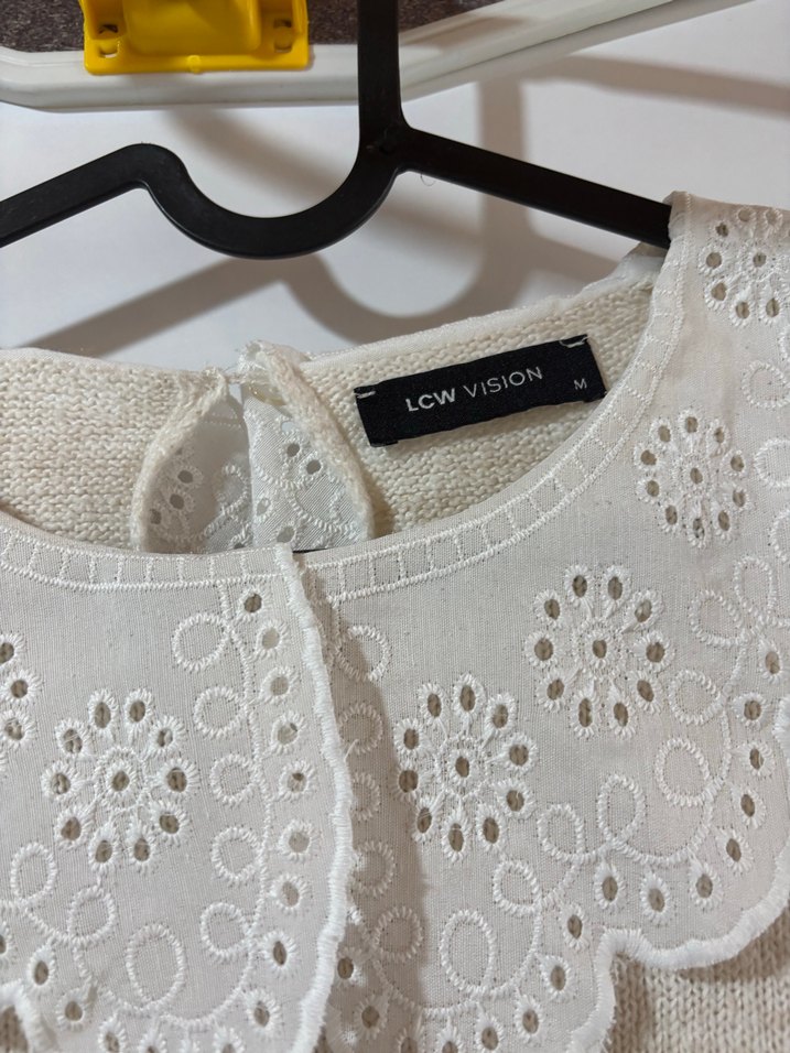 LCW Vision markasına ait beyaz pamuk bluz, dantel ve nakış detaylarıyla crew neck ve uzun kolludur. Salaş kesimi ve normal boyu ile bohem tarzını yansıtır.