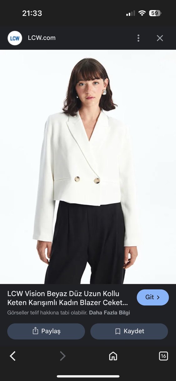LCW Vision Beyaz Keten Karışımlı Kadın Blazer