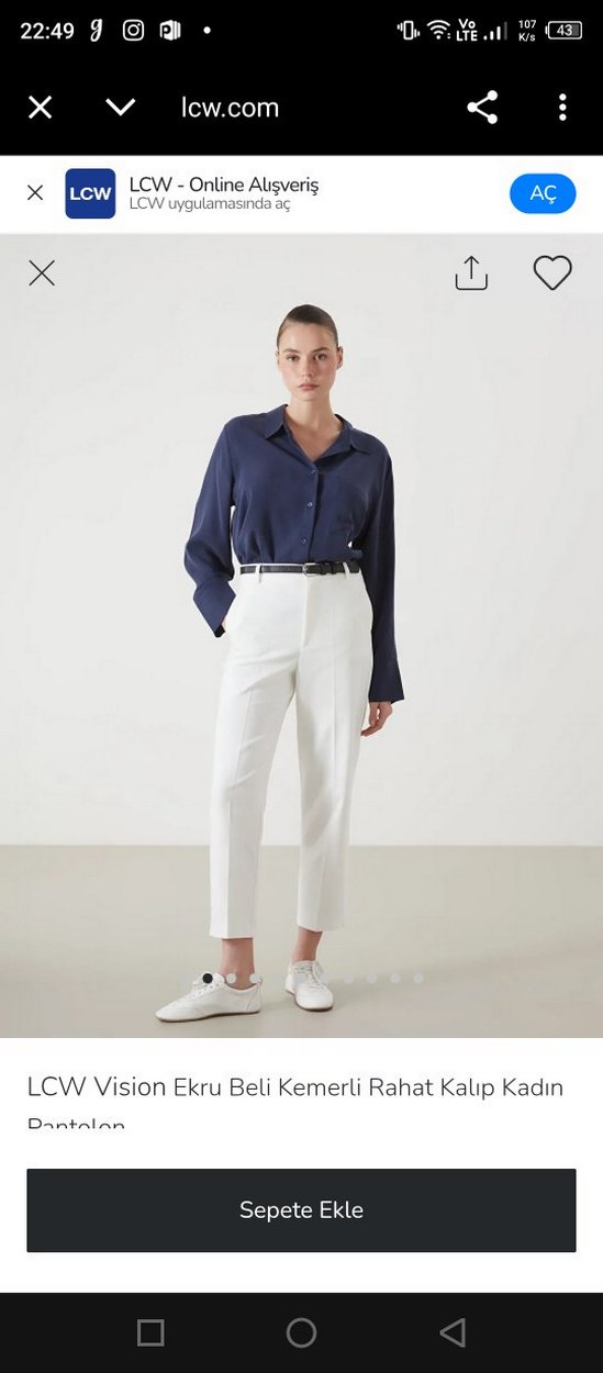 Rahat kesimli, ipeksi dokulu ekru renk kadın pantolon. Ofis için şık ve konforlu bir seçenek sunar. Terzi ile uğraşmak istemiyorum o yüzden satıyorum.