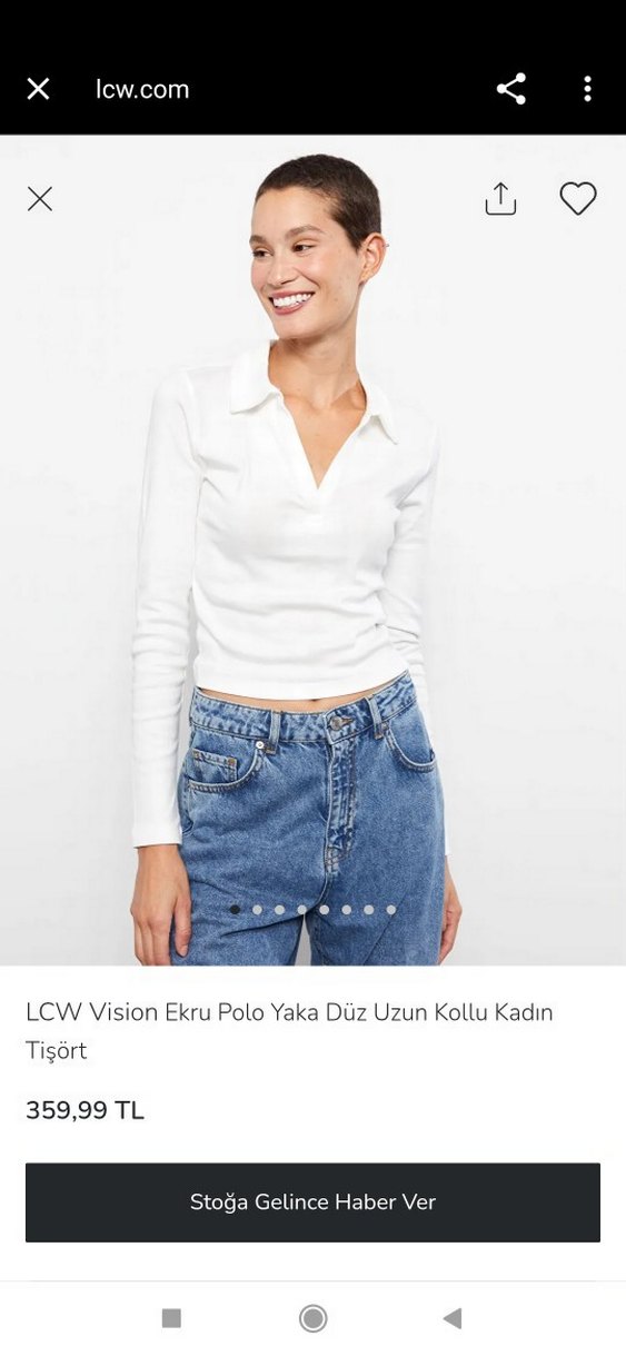 LCW Vision Kadın Ekru Polo Yaka Uzun Kollu Tişört - Görsel 6