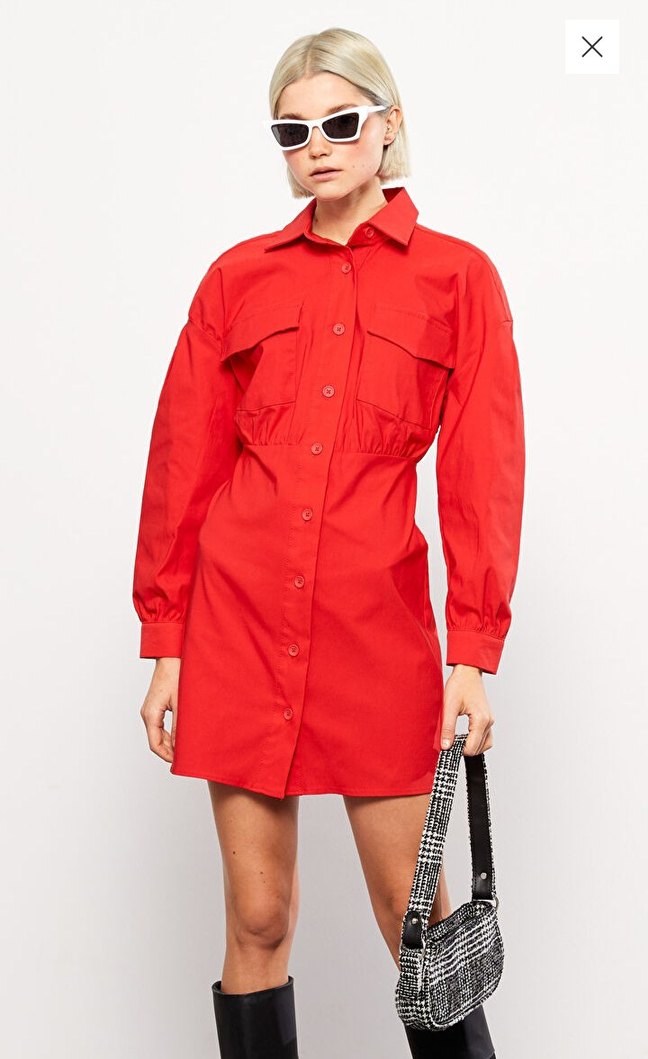 LCW Vision Kırmızı Düz Kollu Kadın Gömlek Elbise