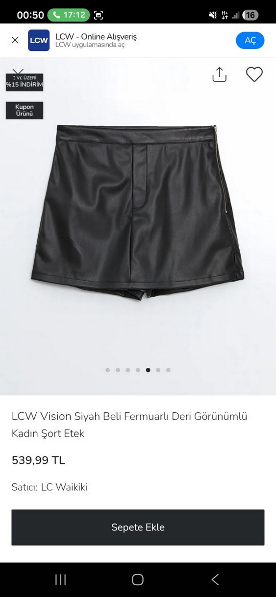 LCW Vision siyah, kemerli, fermuarlı, deri görünümlü mini şort. Sıkı kesimi ve parlak dokusuyla minimalist sokak stili için uygun. M beden hiçbir deformesi yok öğrenci olduğum için paraya sıkışık olduğumdan satıyorum pazarlik payi var