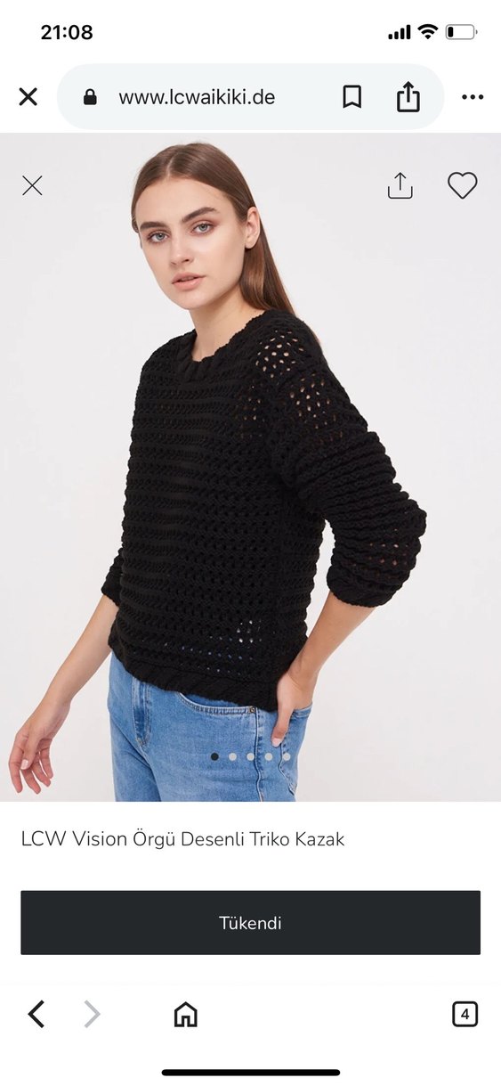 LCW Vision örgü desenli triko kazak, salaş kesim, bisiklet yaka ve uzun kolludur. Normal midi boyda, siyah renkte, günlük rahat kullanıma uygundur. M beden, sayılı giyildi