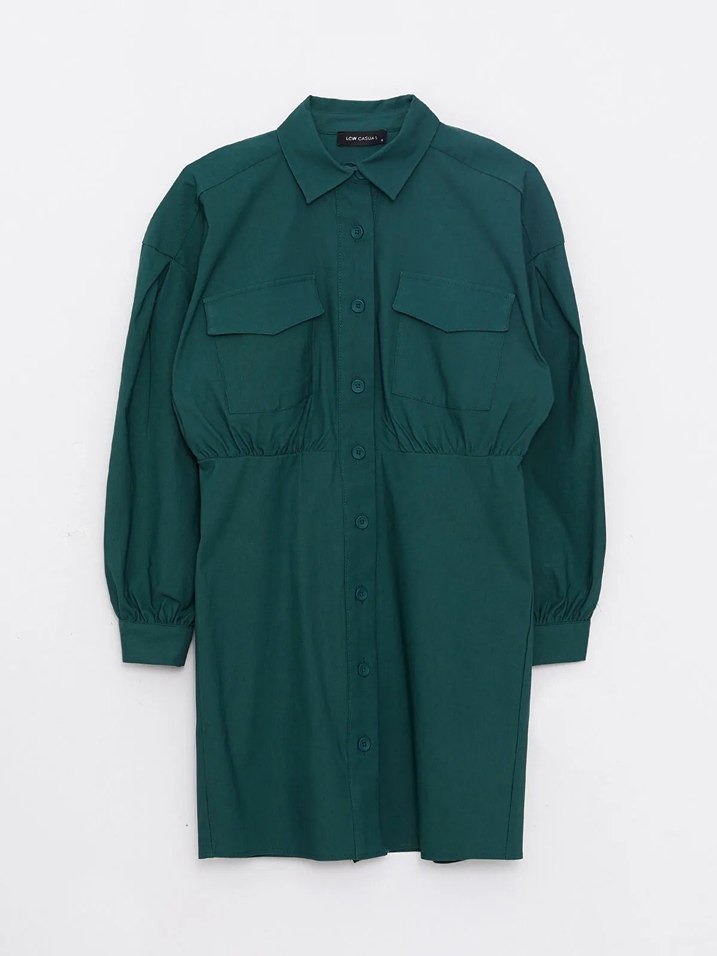 LCW Vision Yeşil Düz Uzun Kollu Kadın Gömlek Elbise