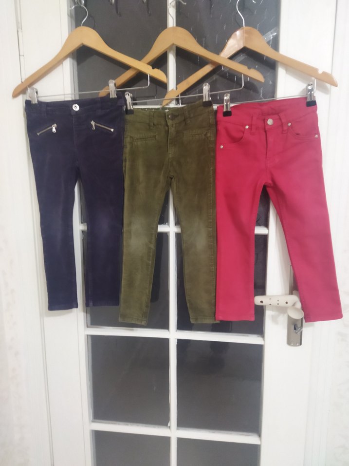 LCW Waikiki koton Pembe boncuk marka 3 adet 3_4 yaş ikisi kadife biri kumaş toplam 3 adet 200 TL toplu fiyat bel genişlik ölçüsü 28 cm boy uzunluğu 60 cm ihtiyaç fazlası Yumuşak süet kumaştan yapılmış, kemerli ve dar kesimli renkli erkek pantolonlarıdır. Trendy casual tarzı yansıtır.