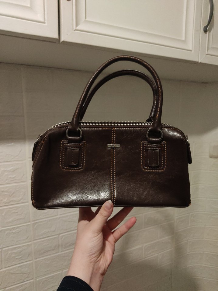 Koyu kahverengi suni deri kadın çanta, vintage tarzı ve minimalist tasarımıyla dikkat çeker. Fermuarlı kapama ve desensiz yüzeyi günlük kullanım için uygundur.