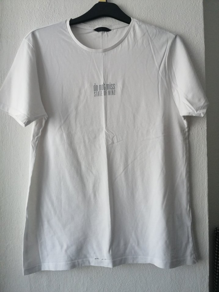 LCW marka, Xl beden, Beyaz pamuklu, kısa kollu, salaş kesim ve bisiklet yaka tişört. Üzerinde gri baskı bulunur. Günlük kullanım için uygundur. tertemiz, ölçüleri iki kol arası 53x2 cm boyu 73 cm.Etek ucunda az bir defosu var, dikerek tamir ettim Kullanıma engel değil. Başka bir şey yoktur.