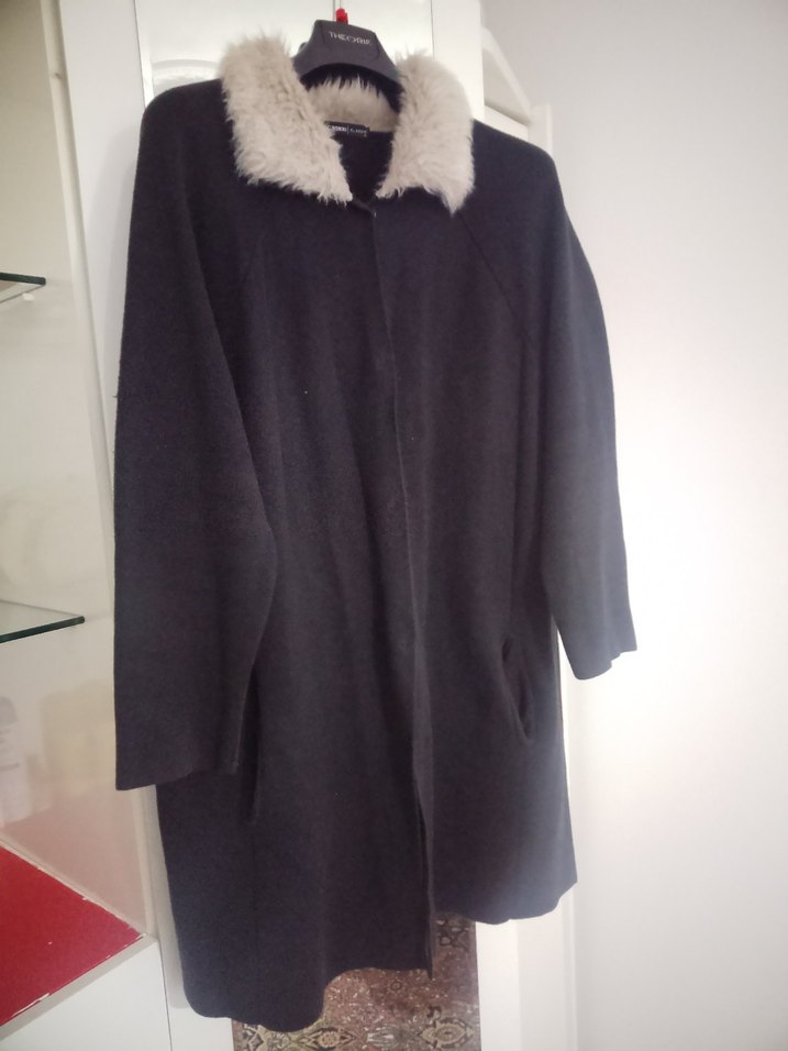 LCW XL beden Siyah,Yakası Kürklü Uzun Kadın Triko Tunik-Kaban