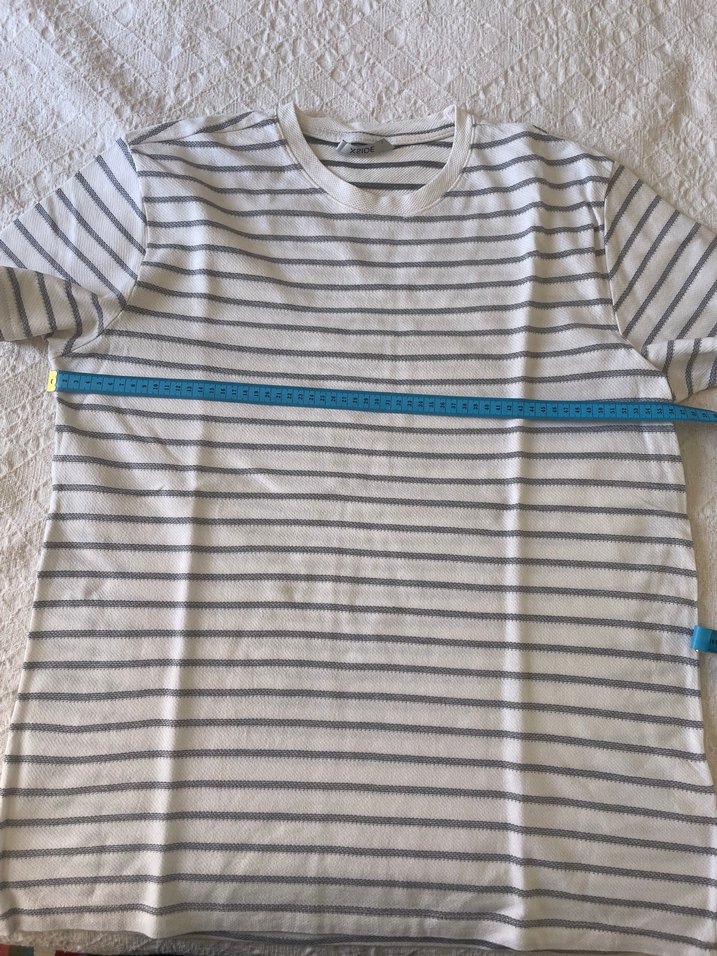 Erkekler için gri çizgili, örme dokulu, pamuklu, kısa kollu ve bol kesim tişört. Sokak stiline uygun rahat bir model.