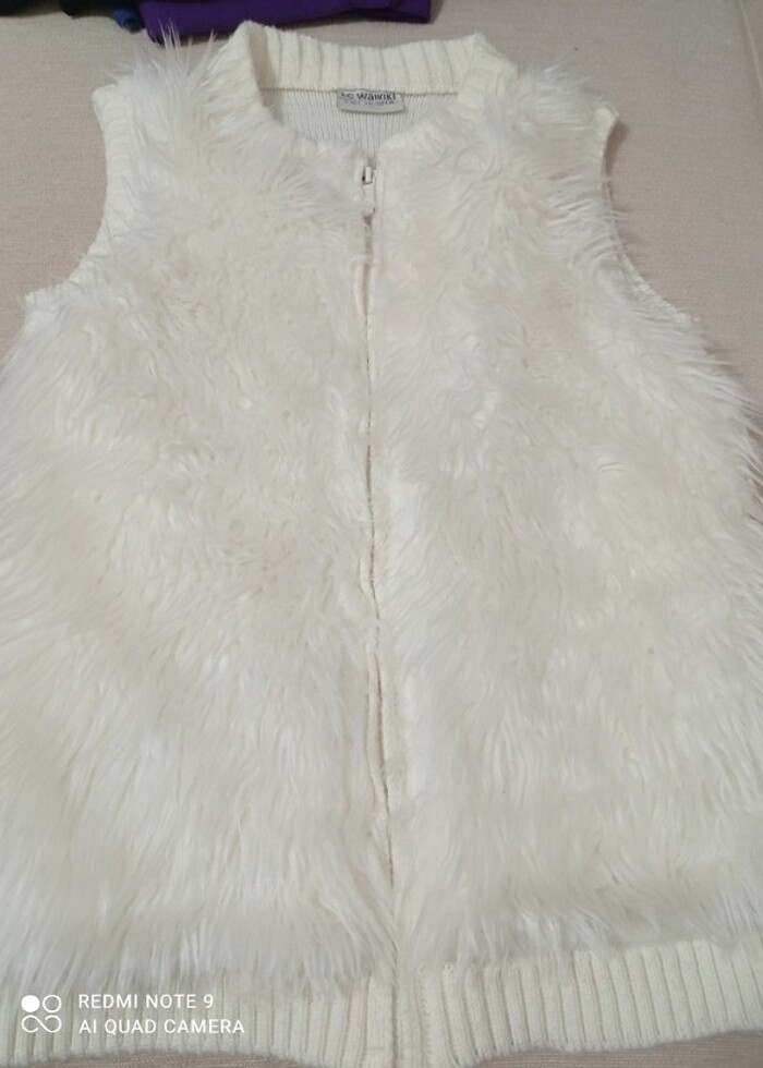 Yelek çok kullanılmadı temiz ve deformesi yok yok sadece fermuar başlığında çok az var fotoğrafta belli 9-10 yaş rengi krem
