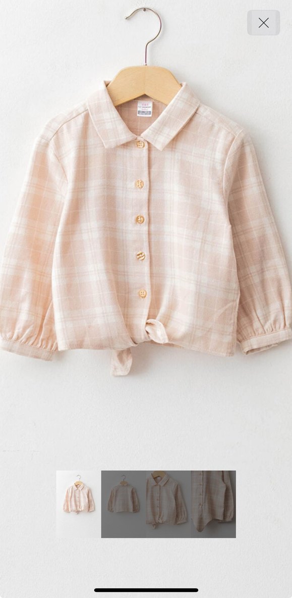 Pamuklu, uzun kollu, yakalı ve düğmeli, bağlamalı, pastel bej tonlarında kız çocuk gömleği. tertemiz sorunsuz yepyenidir #kışlık #ekoseligömlek #kışlıkgömlek