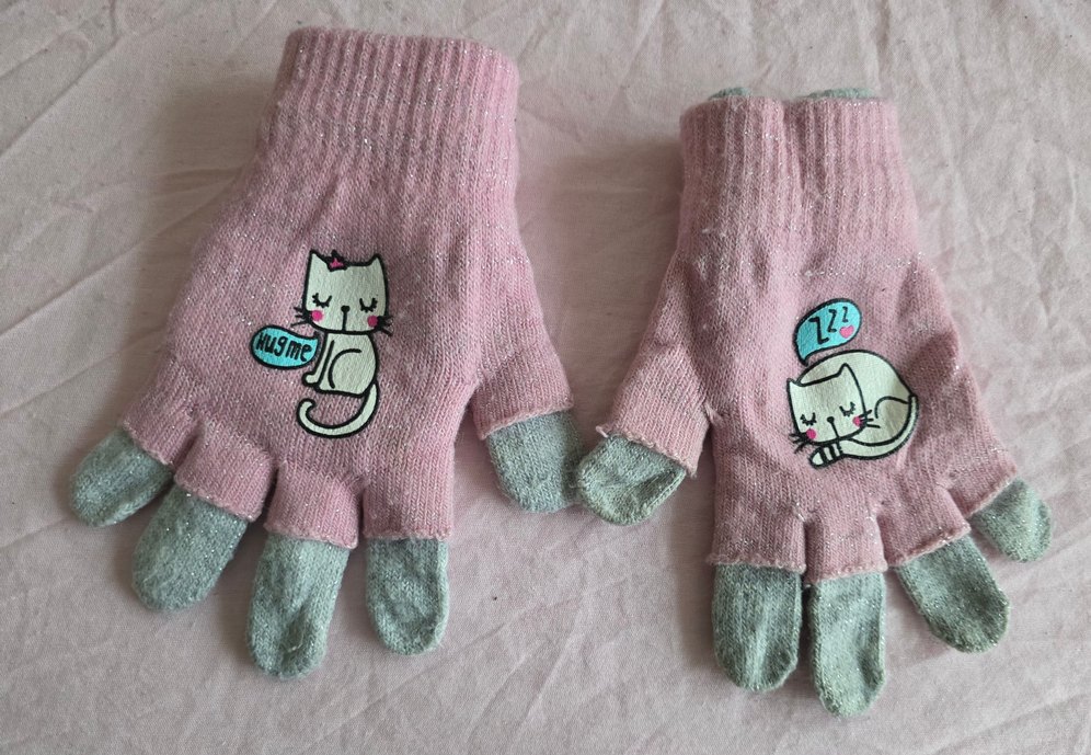 6-10 Yaş LCWaikiki Marka Kalın kullanım için üst üste giyebilir, ya da parmaksız şekilde de kullanabilirsiniz. Pembe örgü, parmakları açık kız eldiveni, nakışlı kedi desenleri ve gri uçlarla rock punk tarzını yansıtır.