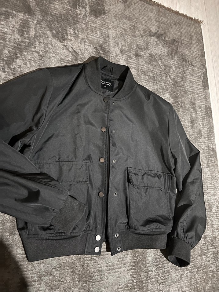 Siyah renkli, düğmeli, bol kesim kadın ceket. Uzun kollu ve yakası kesik detaylı, günlük kullanıma uygun, sentetik kumaştan. Temiz giyildi hiçbir sıkıntısı yoktur