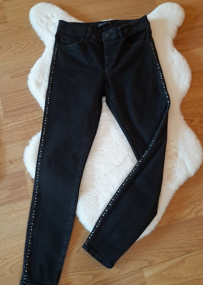 Lcw siyah yanları taşlı jean, slim fit, normal bel, 28/38 Mercury, yüzde 2 likrali, 36 cm bel, 25 cm ağ uzunluğu, 93 cm boy, 2 kez giyildi, şu an bedeni uymadığı için satışta, yepyeni sorunsuz, kalın kot kumaşı #kadingiyim #Kadın jean #jean #kotpantolon #siyah #mbeden #28beden #mavi #lcwaikiki #koton #mango