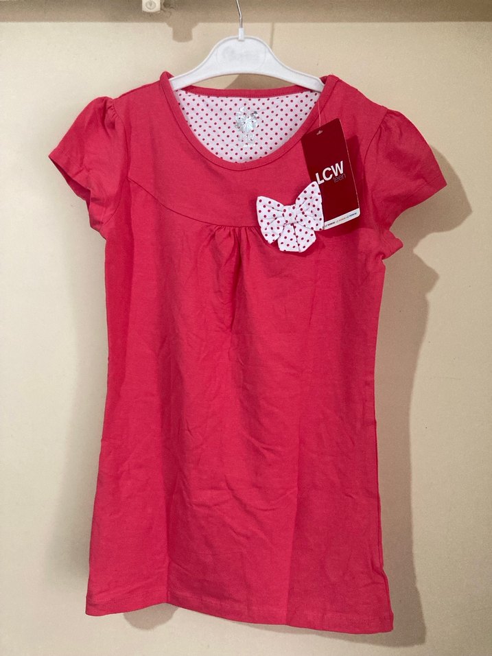 LCWaikiki Kız Çocuk Pembe Kısa Kollu Fiyonklu Tişört