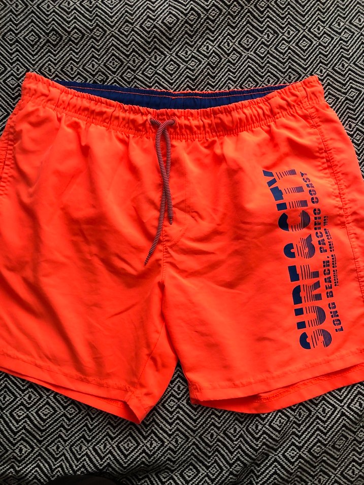 Canlı turuncu renkte, baskılı ve belden ayarlanabilir bantlı erkekler mini şort mayo. Rahat kesimle tasarlanmıştır. boy 41 lastikli ayarlanabilir 44