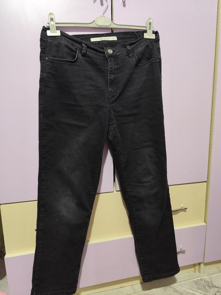 LCWJEANS marka, düğmeli ve baskılı detaylı gri bol kesim kot pantolon, günlük kullanıma uygundur.