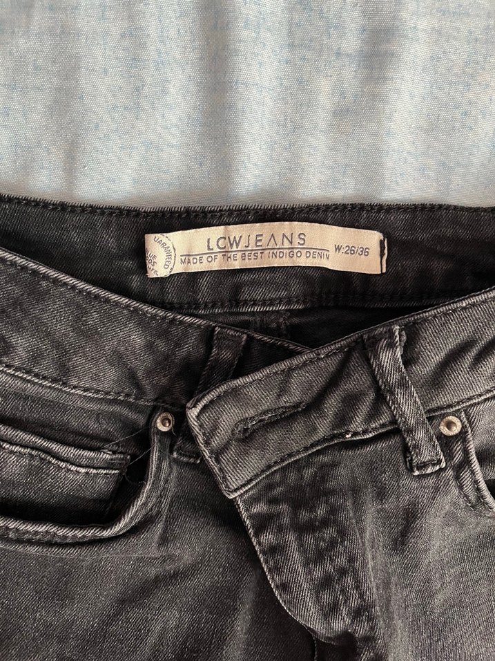 LCWJEANS markalı, tokalı bel detayı ve normal midi boyu ile gri renkli, dar kesim kadın denim pantolon.