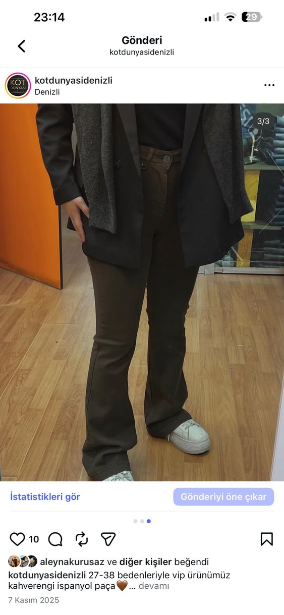 Acı kahverengi, likralı, mağaza ürünüdür. Beden için iletişime geçiniz.