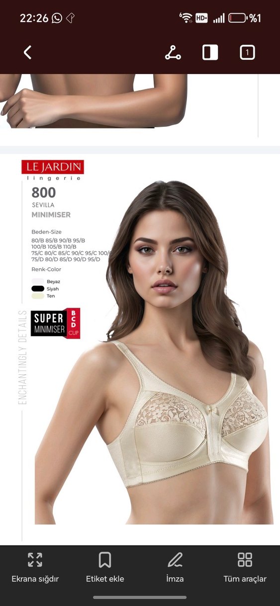 Le Jardin markasının bej renkli, kısa kesim minimisör sütyeni. Açık renk ve desensiz, konvansiyonel tarzda tasarlanmıştır.