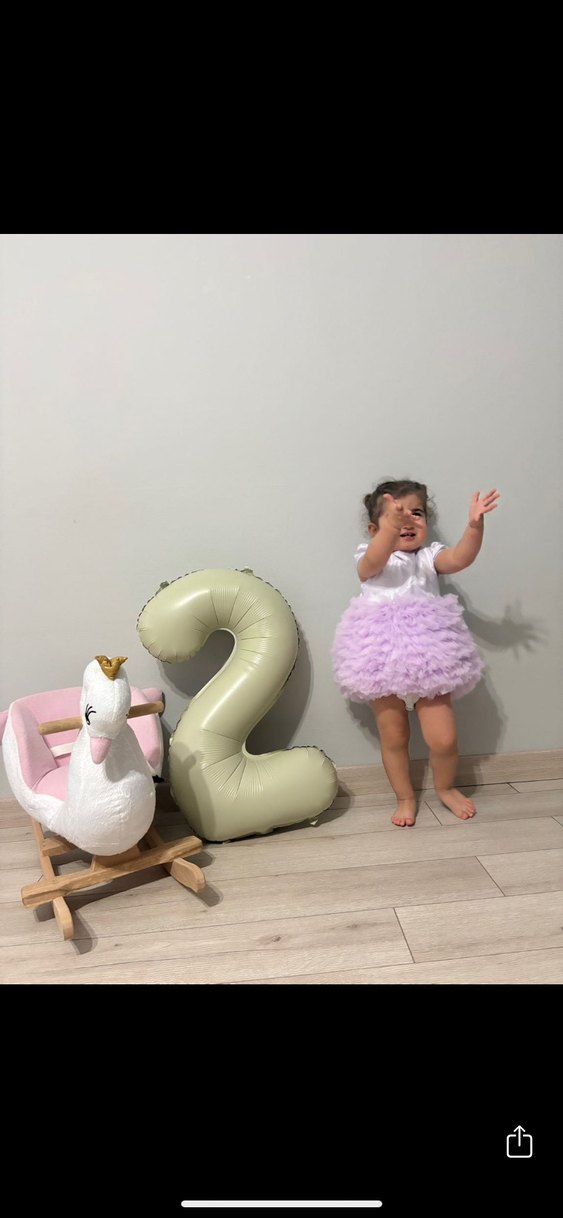 Ürünü maksimum 10 dakika giyinmiştir fotoğraf çekimi için, 12-18 aylık beden. Kızm 2 yaşına girdiğinde giydirdim yine oldu, benim kızım gibi minyon bebeklere 1-2 yaş için gayet olur