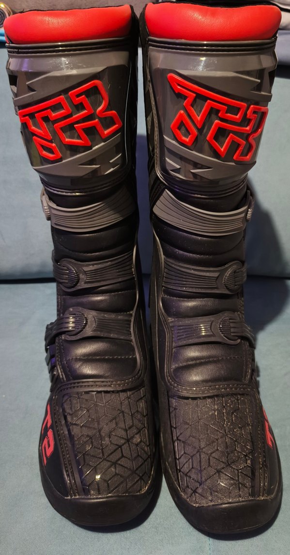 Motorcross için özel korumalikli bot. Toplamda 3 kez kullanıldı. Dayanıklı kauçuk malzemeden yapılmış, desenli ve çoklu tokalı koyu kırmızı erkek biker botları, dış mekan için uygundur.