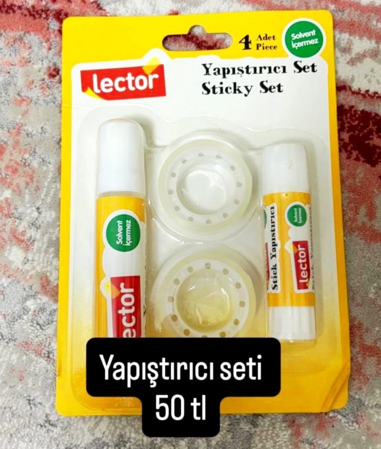 Lector markasına ait, solvent içermeyen, 4 parçadan oluşan sarı yapıştırıcı seti. Farklı yapıştırma işlemleri için uygundur. Fiyatı 50 TL.