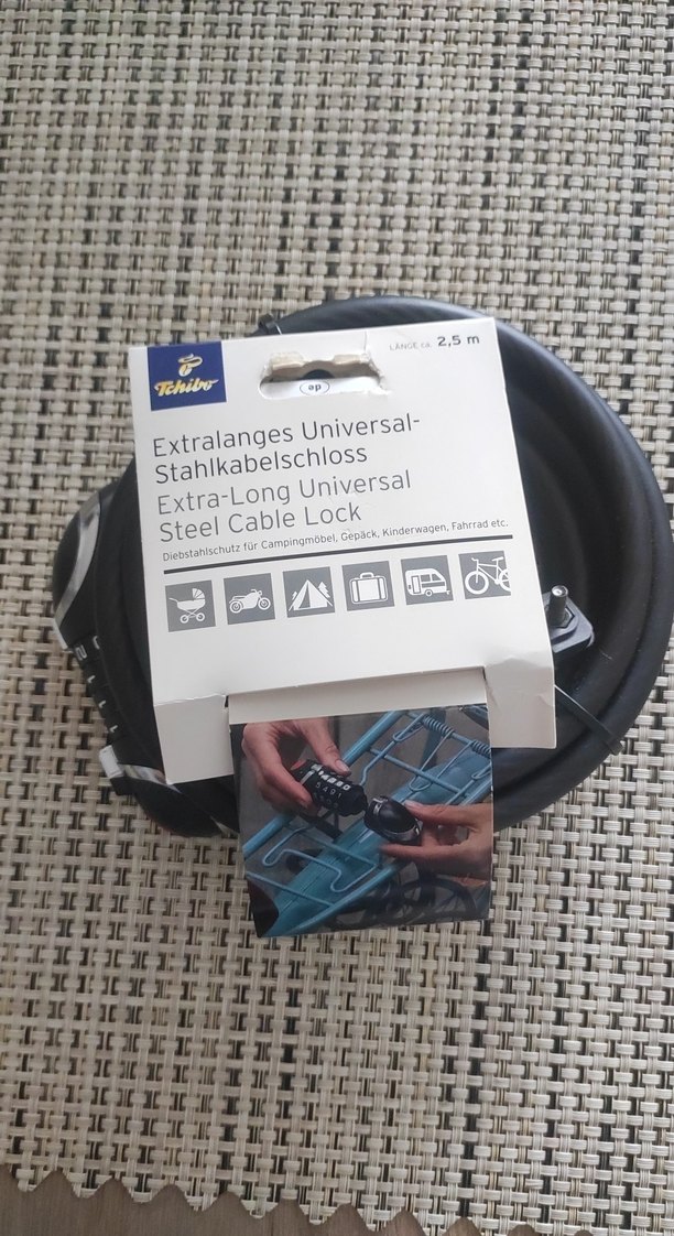 2,5 metre uzunluğunda, dayanıklı ,plastik giydirmeli 12 mm çelik kablolu, siyah, LED aydınlatma sayesinde gece kolay kullanım, bisiklet, bebek arabası, kamp malzemesi ve bavul gibi eşyalar için hırsız koruması , bisiklet çerçevesine takmak için tutacaklı, pil içerikli -pil değiştirilebilir, zararlı madde kontrolü yapılmıştır.
