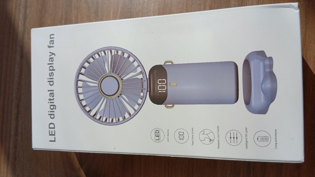 LED ekranlı, gerçek zamanlı güç göstergesine sahip gri taşınabilir vantilatör. Kolay kullanım için elde tutmaya uygundur. ️