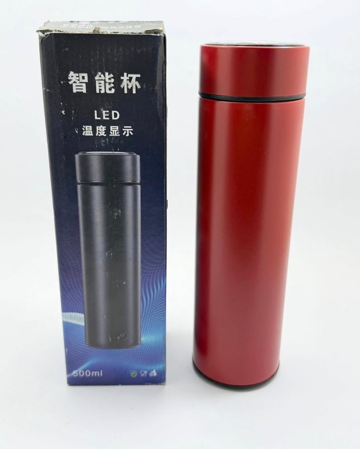 LED sıcaklık göstergeli, 500ml kapasiteli kırmızı termos. Çocuklar için içecekleri sıcak tutar.