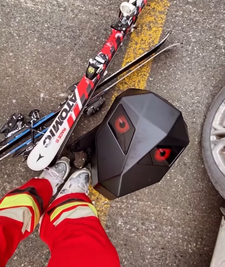 Siyah , led gözlü , motorcu çantası . Telefona uygulama ile bağlanıyor , dilediğiniz modda kullanıyorsunuz . İçi oldukça geniş , kayakta takmak için almıştım , sadece 2 kez kullandım , kayak kaskı sığıyor , dağda kayarken gözleri hareket ettikçe herkesin dikkatini çekiyor . Çantayı YouTube üzerinden daha detaylı videolarını inceleyebilirsiniz .