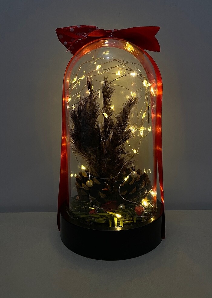 Led Işıklı Cam Fanus-Dekoratif Mika Cam Fanus