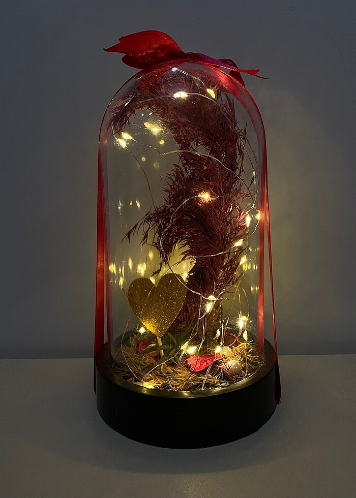 Led Işıklı Cam Fanus-Dekoratif Mika Cam Fanus