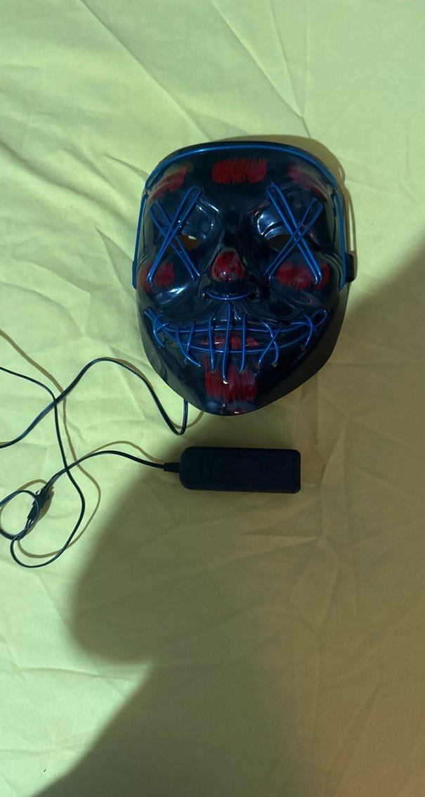 Mavi ve kırmızı LED ışıklı erkek maskesi, kablolu güç kaynağı ile aydınlatılır. Etkinlikler veya kostümler için uygundur.