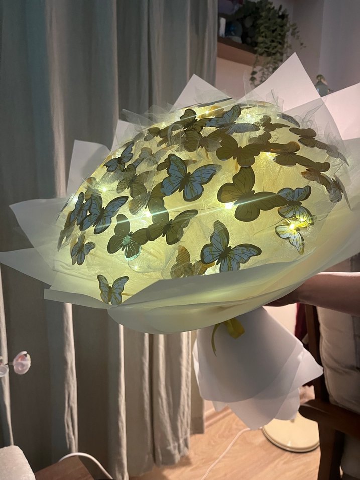 Şeffaf tasarımlı, beyaz tonlarda, kelebek detaylı kadın şemsiyesi, çağdaş ve avangart tarzı sevenlere uygun.