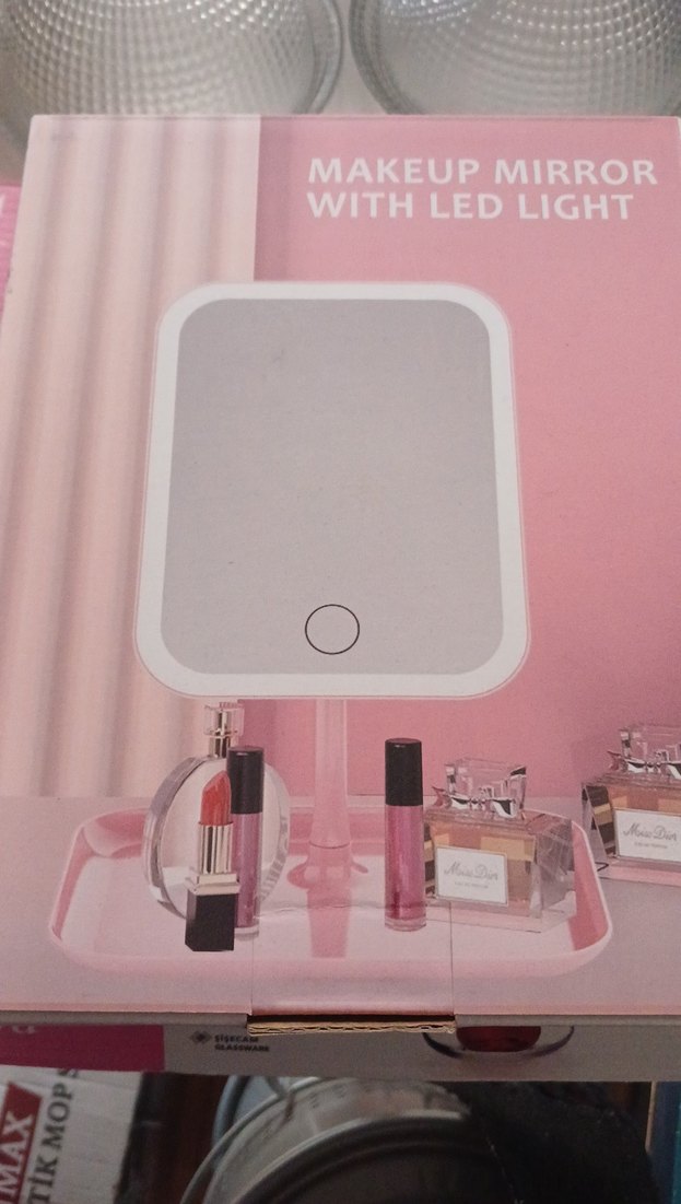 Dokunmatik LED ışıklı, pembe renkte makyaj aynasıdır. Ayrıntılı makyaj uygulaması için uygundur.