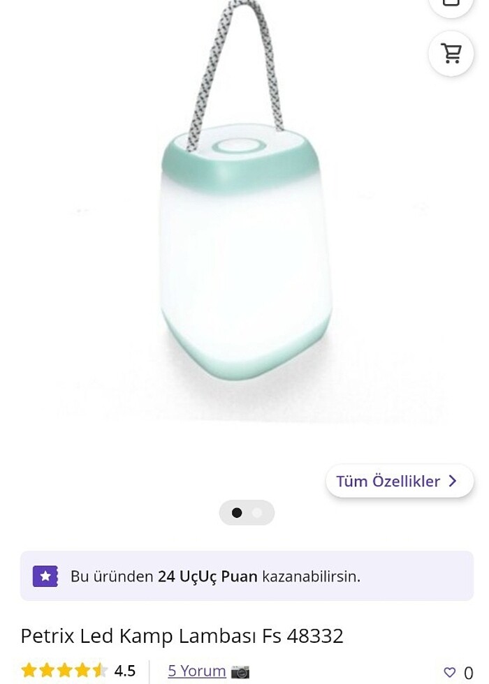 Ürün sıfır kutuludur. Pilli olması extra avantajlı olup 3 kademeli arttırılabilir ışık şiddeti vardır.