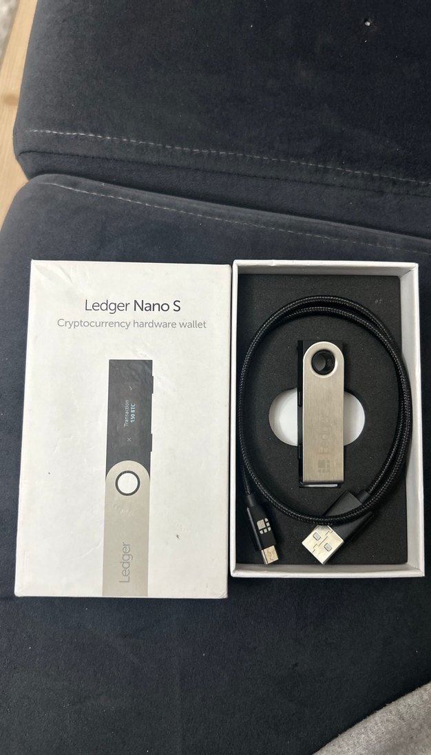 Ledger Nano S altın renkli kripto para donanım cüzdanı, USB kablosu ile birlikte. Dijital varlıklar için kompakt ve güvenli.
