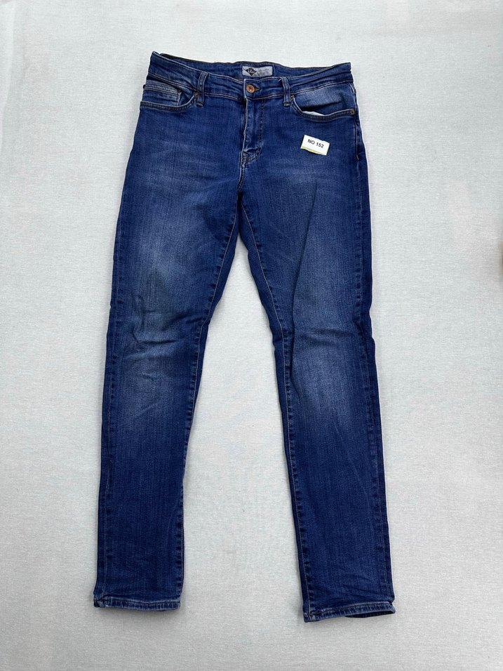 Parlak mavi renkte, normal boyda ve regular fit kesime sahip denim kadın jean. Günlük kullanıma uygun, rahat ve şık görünüme sahip. Son görselde cep köşesinde defo var