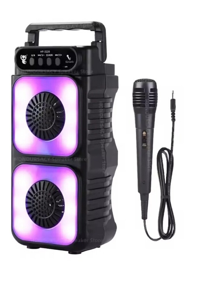 Leerfei LF-1576 Kablosuz Bluetooth Hoparlör ve Mikrofon Seti Leerfei LF-1576, güçlü ses çıkışı, renkli LED ışıkları ve taşınabilir tasarımıyla müzik keyfinizi her yere taşıyor. Bluetooth, USB, TF kart ve AUX bağlantılarıyla uyumlu olan bu hoparlör, dahili bataryası sayesinde uzun süre kullanım sunar. Kutu içeriğinde bulunan kablolu mikrofon, karaoke ve anonslar için idealdir. 3” x 2 hoparlörleri yüksek ses kalitesi sağlarken, müziğe uyumlu LED ışıkları eğlenceli bir atmosfer oluşturur. Hafif ve ergonomik tasarımıyla taşınması kolaydır. Kutu İçeriği: Leerfei LF-1576 hoparlör, kablolu mikrofon, şarj kablosu ve kullanım kılavuzu. Müzik ve eğlenceyi bir arada yaşamak için Leerfei LF-1576 tam size göre!