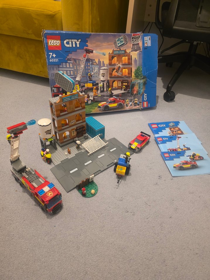 LEGO City Yangın İstasyonu seti, çok katlı bina, itfaiye aracı ve helikopter içerir. 7 yaş ve üzeri için uygundur. 766 parçadan oluşmaktadır. Lego 60321 seti kapsamlı ve eğlenceli bir settir. Tek parça eksiği vardır. yerine başka renk kullanılmıştır. kutusu kitapçıkları ile harika bir settir. Diğer lego ilanlarıma da bakabilirsiniz.