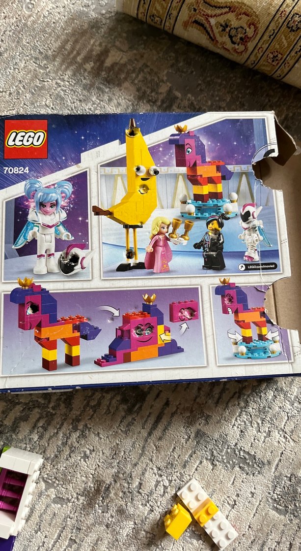 LEGO 70824 seti, muz karakteri ve pembe lama dahil renkli figürler ve hayvanlar içerir. Küçük LEGO minifigürler ve eğlenceli parçalar bulunur. Eksikler olabilir parçalardan